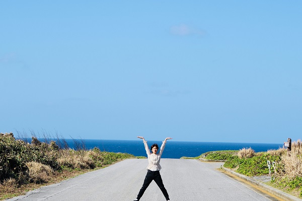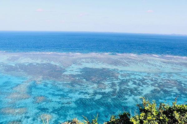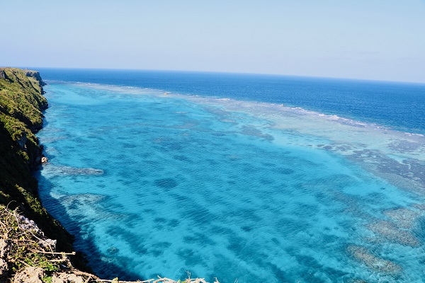 さらに進んで、高い崖の上から透き通った海を眺める。