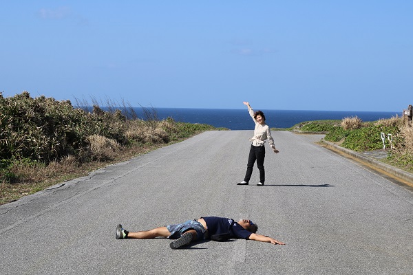 離島ドライブが始まってすぐに歯磨きを見つけた夫。無駄に拾って記念撮影。