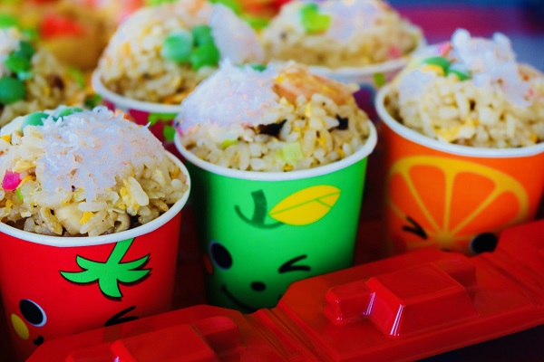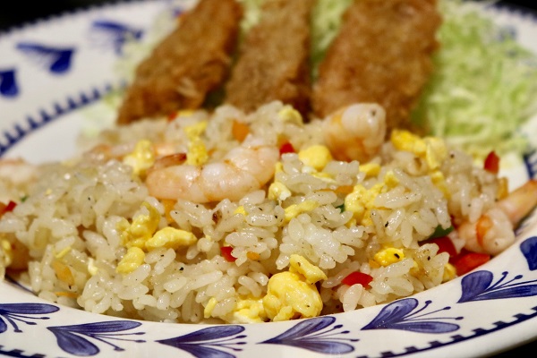 エビ&カニチャーハン。盛り付けは私の担当です。一番楽で美味しいとこ取りですね。