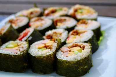試作品の段階でボツになった韓国風のり巻き。私は美味しいと思ったのですが、食べた時のインパクトが薄かったようです。ごま油が効いています。