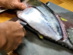 ご近所のお魚売りのおじさんからマグロとカツオを3匹も頂いちゃいました。