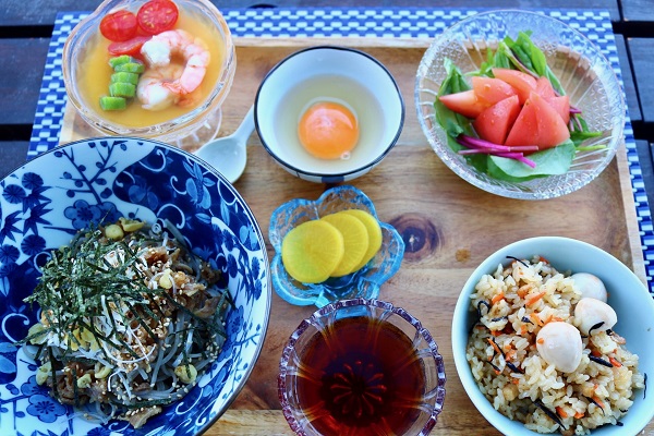 海が眺められるテラスで頂きました。同じ道沿いですが我が家とは全く違う眺めなんですね~~。