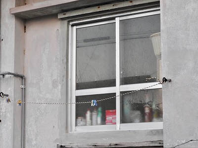 ここにしか居場所はなかったのだろうかという玄関前の干し場もある。
