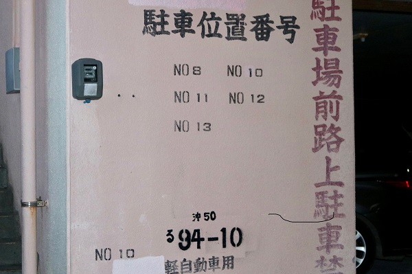駐車場位置番号は何故か8から始まり、9はない。