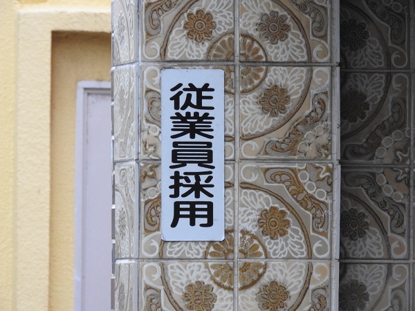 裏口のドアなんかに「従業員専用」という看板はよくあるが、「従業員採用」は初めて見た。