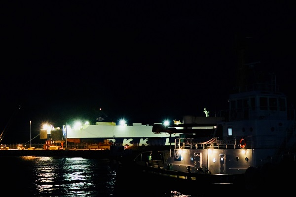 暗いうちから出て朝のウオーキングをすると、貨物船の荷下ろしに遭遇することもある。暗い海に浮かぶ灯りのついた船は何となく惹かれるものがある。