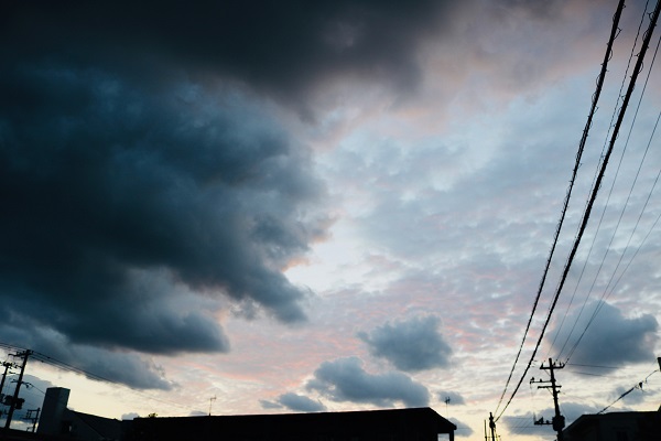 繁華街は島の中でも比較的高いところにある為、朝焼けの空が綺麗に見える。