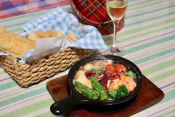 料理担当は夫です。試作品で具沢山アヒージョを作りました。