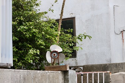 船の羽か、扇風機の羽か・・・門のところのプロペラは何のためだろう。