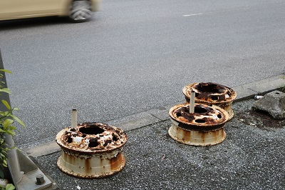 でも、ホイールをのぼり旗の台にしているところは珍しい。
