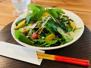 カレーについているサラダは、さすが農家さん。島の野菜が盛りだくさんでした。余計なお世話ですが「サラダランチ」なるものも考えてみてはどうでしょうか?サラダがメインで!!