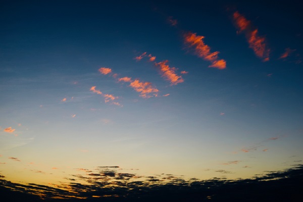 真上の空を見上げると、朱く染まった雲の階段が天まで続いている。