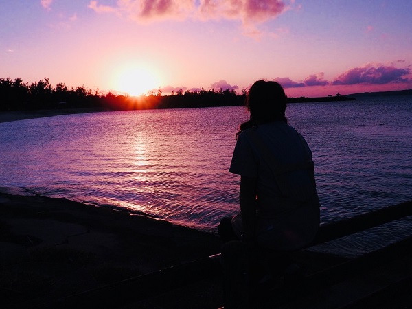 夕日が奇麗な日は、宿からだったり、お隣の公園だったり、または目の前の桟橋まで出て行って眺めます。いつでも違うその空はいつ見てもいいものです。