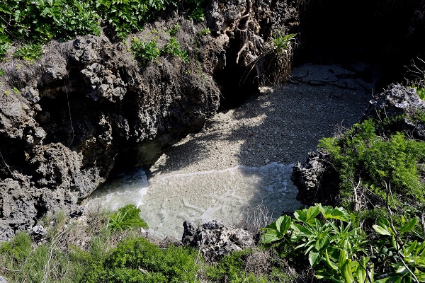 ぽっかりあいた縦穴をこわごわ除くと、海水が途中まで入って来ていた。