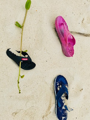 子供のサンダルがいくつか落ちていたが、その中でもわずか数センチのかわい~~いサンダル。拾って帰ってくればよかったな。