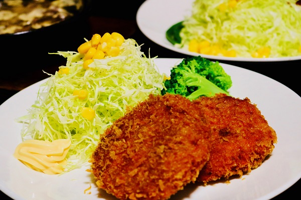 料理担当は夫です。最近、コロッケの試作品を作りました。牛肉を荒く刻んで入れます。たかがコロッケと言わず、ディナーのメインになるくらい美味しいコロッケを作りたかったようです。そのもくろみは見事に成功!!と、家族の評価は高かったです。