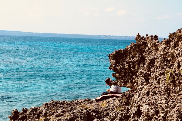 なんだか昔見た小笠原の海に似ている場所。そういえば、小笠原を初めて旅した時に夫は「昔の宮古の海のようだ」と言っていた。