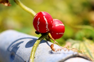 ここで毒スイカを見つけた。夫が子供の頃にそう呼んでいたそうなのだが、「食べられるのかな?」の疑問に、「毒スイカなんだから食べられないだろう!?」と夫が応える。でも、毒スイカの命名は子供達でしょ?正式名称は聞いたことがない。親指の先位の実だ。