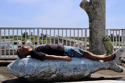 実際にその高い台へ登ってみると・・・・恐るべしこの島は・・・ベンチまでもコンクリートで生き物を造っていたのだった。