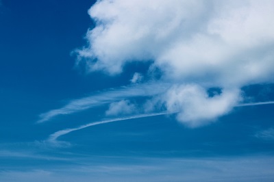飛行機雲のカーブに沿って進んで行くと、