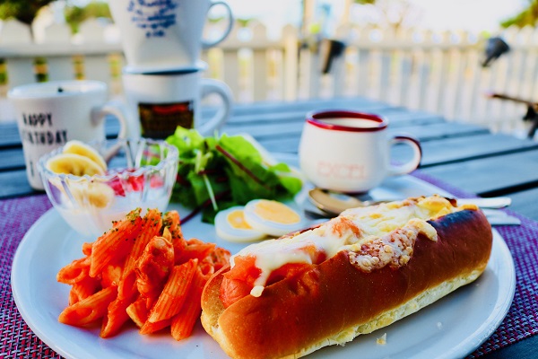 それでは、ポークランチョンミートの「海と空を眺めるダイニング HELL’S KICHEN(ヘルズキッチン)」のお食事のご案内です。