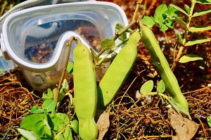 前回は気が付かなかったが、大きな大きなさやえんどうを見つける。(厳密にはさやえんどうではないが)水中眼鏡との比較でそのお化け的な大きさはわかるだろう。