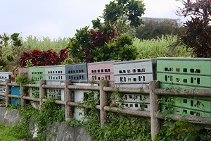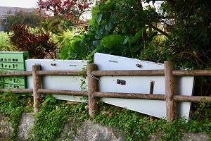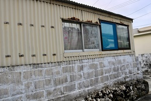 上の2種類はまあ宮古でよく見る光景だが、ドアまで使っちゃうって凄い。しかも郵便受けもピンポンもついている。