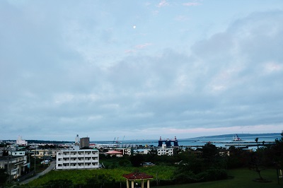 お隣りの静佳ビーチを眺めて、よし!!とうなづいてから、お家のテラスで朝食を。