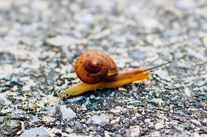 カタツムリはゆっくりゆっくりと道路を渡る。