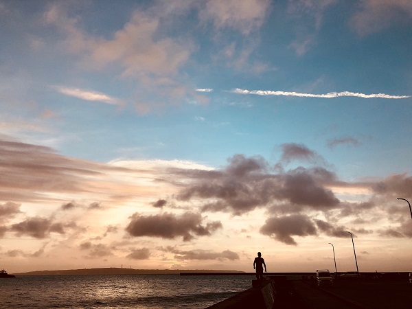 私の影響なのか、最近では夫も積極的に夕日に向かう。