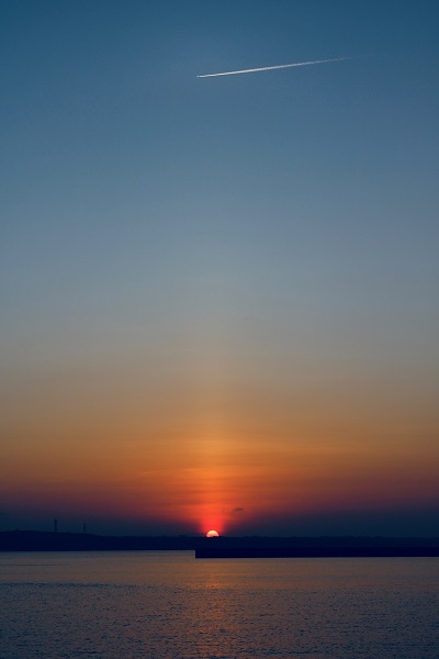お次は「飛んでいく飛行機と沈む夕日とのコラボレーション」