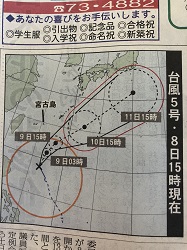 新聞で台風の進路が出ていました。どうやら宮古は被害はなく済みそうです。