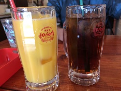 食事が終わる頃「飲み物がつきますけれどどちらがいいですか?」と聞かれ、出てきたのを見てまたびっくり。あれま。大きなジュース。