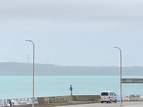 おやおや。おじさんはもう朝の6時から桟橋で釣りをしています。