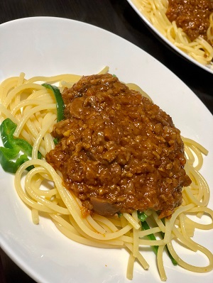 何も作りたくない夫は、それでも作り置きしておいた喫茶店風ミートソースを作ってくれました。
