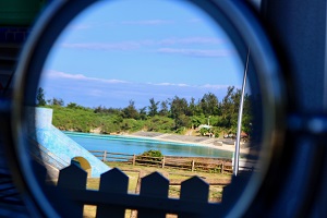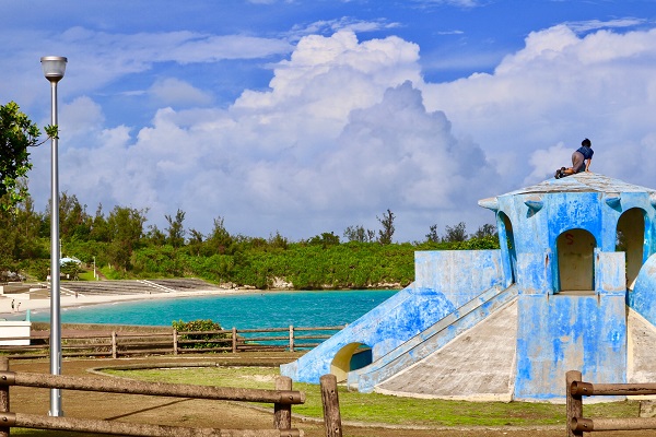 お隣りのパイナガマビーチの「浮き」も潮位が高すぎて「浮き」なのに浮いていません。