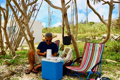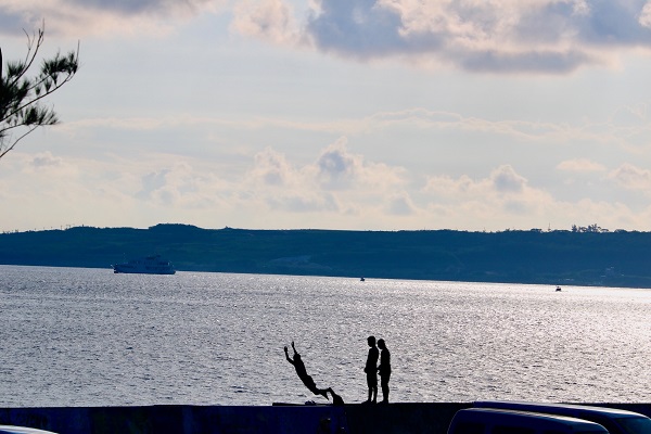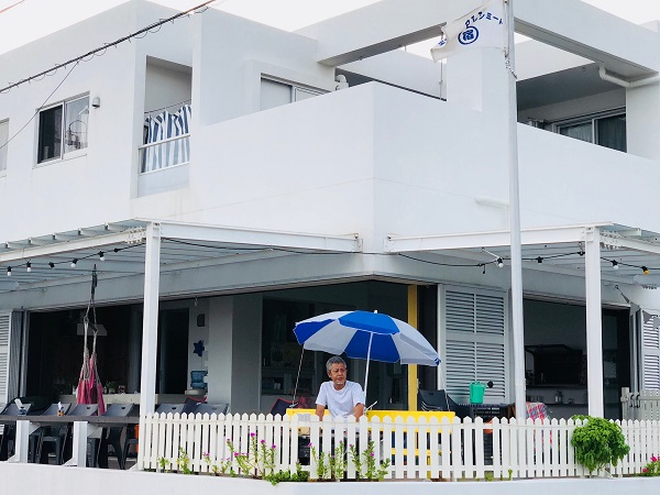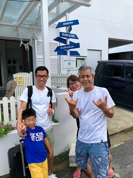 さてさて、姉妹のお母さんたちがそれぞれのお子さんを連れてのご宿泊。男の子と女の子の「いとこ同士」はとても仲良しです。お隣のパイナガマビーチでウインドサーフィン体験レッスンに挑戦しました。2階で掃除をしている時にその様子を少し見学しました。