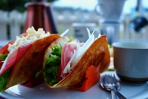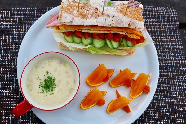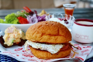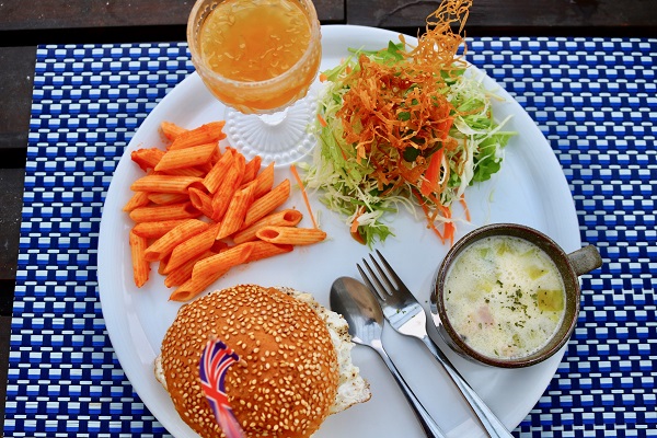 それでは、ポークランチョンミートの「海と空を眺めるダイニング HELL’S KICHEN(ヘルズキッチン)」のお食事のご案内です。