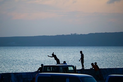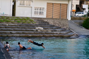 初めから海に怖いものなんかない島の子供達は、年がら年中桟橋から飛び込んで遊んでいます。
