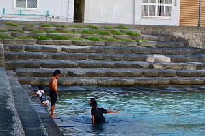 まだ小さい子達は、浅いところから飛び込みの練習でしょうか・・・。