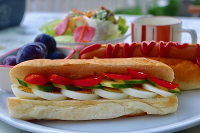 新しく見つけたパンでの試作品サンド。食材を手に入れるのに苦労する宮古では、パンも必ずしも同じものが買えるとは限らない。料理担当の夫は、買い出しにもかなりの時間を要するみたいです。メニューを決めたのはいいけれど「あのパンが手に入らなかった~~」なんてこと、よくあるんです。