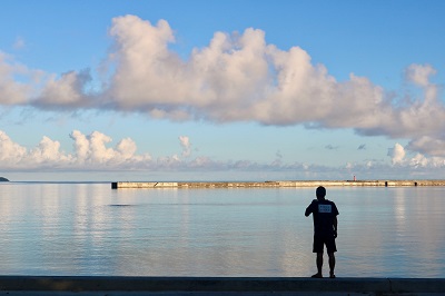 用事もないけど、ビーチの前のコンビニへ無理矢理アイスコーヒーを買いに行くという用事を作り、夫と家を出た。日本全国売っているものは同じはずのファミリーマートも、島では何故かお刺身がよく売られている。