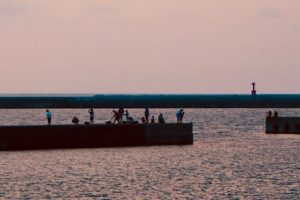 本当は、上の写真の彼の真ん前に見えている横に伸びた防波堤。そこが彼の一番座りたかった定位置だったようですが、翌日からは天気が崩れ、夢叶わずでした。