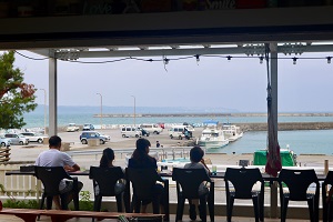 テラスのカウンター席で海風にあたりながらお召し上がり下さい。