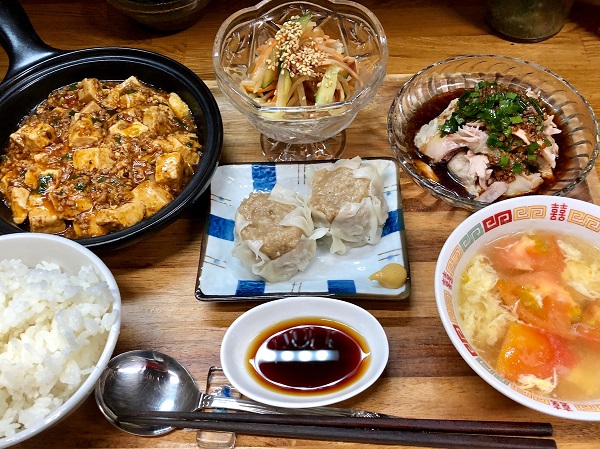 夕食の一例です。料理担当の夫は様々なジャンルの料理を作りますが、その中でも中華を作るのが一番好きらしいです。15歳で島から東京へ出て、最初に働いたのが中華屋さんだったからでしょうか?それ以来ず~~~~~~~~っと飲食業一筋です。彼の夢だった「自分の店」を東京で持ちましたが、私がどうしても宮古に住みたいとわがままを言い、彼の店は故郷の宮古で「宿」に形を変えました。最初はいやいや宮古に帰ってきた彼も、今では今までで一番料理を楽しんでいるように見えます。いや、そう彼に言い聞かせている・・・が正しいかな?