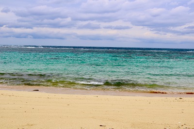 とにかく、絶好の場所での三線弾きは次回のお楽しみとなりました。が、翌朝、朝食の準備をしていると、お隣りのビーチで三線を弾いているA氏を発見!!