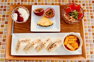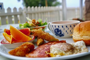 それでは、ポークランチョンミートの「海と空を眺めるダイニング HELL’S KITCHEN(ヘルズキッチン)」のお食事のご案内です。