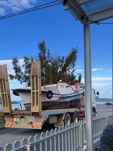 台風もようやく落ち着きを見せ、先日、お隣りのパイナガマビーチに戻したクラゲ除けネット。でも詰めが甘かったのか、1日でぐちゃぐちゃになってしまいました。いつ直しに来るのかな?と、思っていると、昨日ようやく船を積んだクレーン車が宿の横を通って行きました。ちょうどテラスで朝食のソーメンを頂いている時に・・・。寒くなってもソーメンは美味しいのよ~~~ん!!