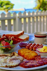 それでは、ポークランチョンミートの「海を眺めるダイニング HELL’S KITCHEN(ヘルズキッチン)」のお食事のご案内です。