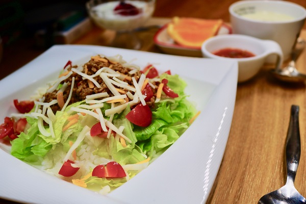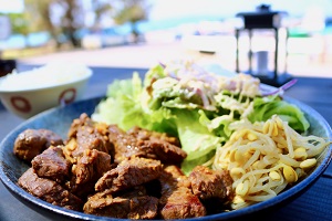 それでは、ポークランチョンミートの「海と空を眺めるダイニング HELL’S KICHEN(ヘルズキッチン)」のお食事のご案内です。
